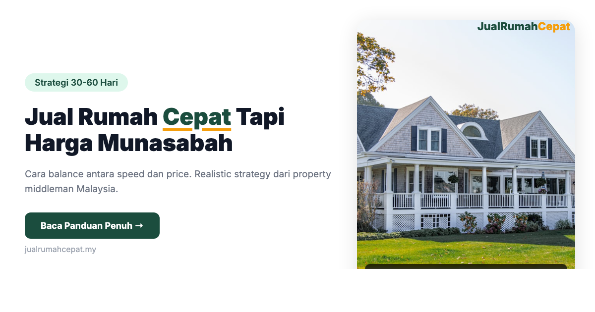 Artikel ni share bagaimana nak balance dua-dua ni supaya anda dapat tutup deal dalam 30 sampai 60 hari tanpa kena rugi besar. Semua tips based on pengalaman team kami handle ratusan kes seller urgent.